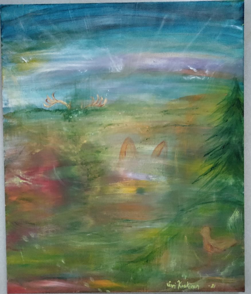 1.-28.2.2021 oli Kauhajoen Hella-galleriassa taideterapeuttien näyttely, jonka teemana oli EHEYTYMINEN, JÄLKIMAININKEJA YHTEISESTÄ TAIPAALESTA. Me kaikki näyttelyyn osallistujat opiskelimme samalla kurssilla taideterapeuteiksi. Ryhmässämme oli voimaa ja luovaa potentiaalia: saimme paljon eväitä elämäämme antoisista opinnoista ja ryhmähenki oli mahtava.